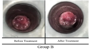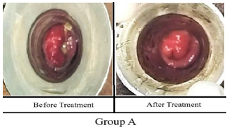 Clinical images before and after treatment for Group A and Group B are presented in Figure 1 and Figure 2, respectively.
